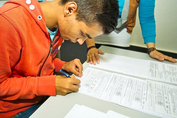 Für Diogo und David aus Portugal ist es ein bewegender Moment an diesem Donnerstag an den Euro-Schulen Halle. Sie haben im Praktikum unter Beweis gestellt, dass sie eine Ausbildung zum Dachdecker aufnehmen wollen.