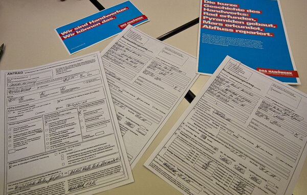 Für den Geschäftsführer des Fachbetriebes für Dach- und Fliesenarbeiten aus dem Kabelsketal, Roland Bernstein war es ein Bedürfnis, die Ausbildung als Dachdecker persönlich anzubieten. Die Ausbildungsverträge hatte er gleich mitgebracht. Seine Ehefrau sorgte für die nötige „mütterliche Wärme“, wie es sich für ein gestandenes Handwerksunternehmen gehört.