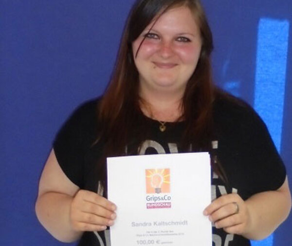 Eine große Freude so kurz vor der Abschlussprüfung, womit die Auszubildende Sandra Kaltschmidt aus der VK 13/2 nicht gerechnet hatte. Gewonnen hat sie 100 €, die sie für die Einrichtung ihrer eigenen Wohnung gut verwenden kann.