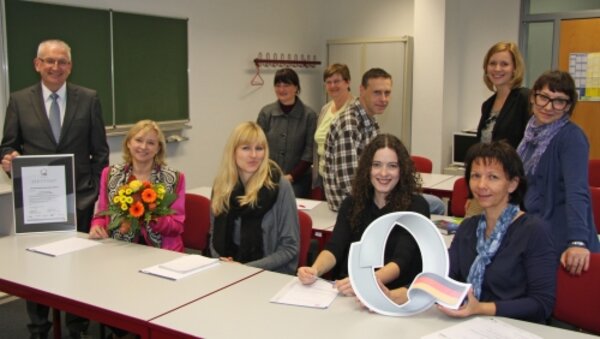 Erst seit diesem Jahr ist ein Direkteinstieg in die Stufe III durch die Anerkennung etablierter Qualitätsmanagement-Systeme möglich. „Diese Chance haben wir genutzt,“ freut sich Kathrin Hillig, Leiterin der Euro-Schulen Dresden, Riesa und Meißen und selbst Landesdozentin der Initiative ServiceQualität Deutschland in Sachsen. „Seit 1996 ist unsere Einrichtung nach DIN EN ISO 9001:2008 zertifiziert. Dafür haben wir die internen Prozesse und Strukturen überprüft und ein Qualitätshandbuch entwickelt, in dem Aufgaben und Verantwortlichkeiten klar geregelt sind. Wir stellen uns jährlich sowohl einem internen als auch einem externen Audit, um immer wieder an der Verbesserung des Qualitätsniveaus zu arbeiten. Davon profitieren neben unseren Schülern und Kursteilnehmern auch die Geschäftspartner.“