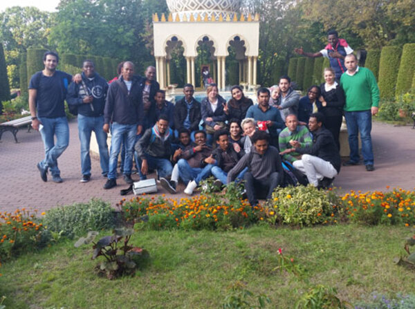 Der Chef des Filmparks Babelsberg, Herr Friedhelm Schatz, ließ es sich nicht nehmen und lud 25 Teilnehmer unseres Kurses „Deutsch für Flüchtlinge“ aus Eritrea und dem Iran in den Erlebnispark ein.