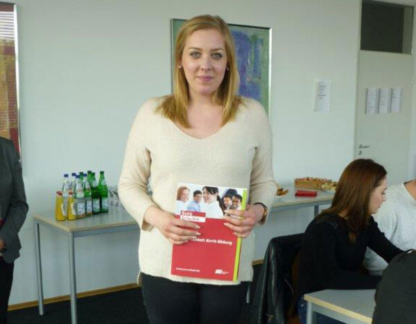Seit September hatten sie an dem anerkannten Vorbereitungskurs an den Euro-Schulen Mainz teilgenommen. Am 3. Mai 2016 überreichte ihnen Schulleiterin Hildegard Duffner gemeinsam mit einem Vertreter der Aufsichts- und Dienstleistungsdirektion (ADD) die Zeugnisse. Das beste Abschlussergebnis erzielte Schülerin Franziska Palzer (Foto).