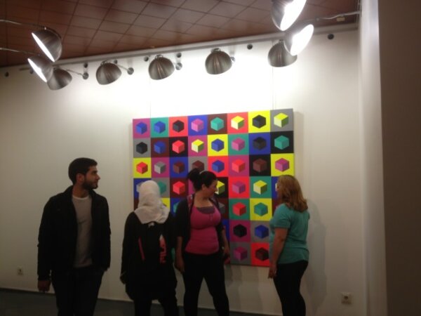 Zu Beginn wurden die interessierten Teilnehmer mit der Ausstellung „Positive Abstraction“ von Cathy Jardon konfrontiert, die sich für alle Besucher des Rathauses im frei zugänglichen Erdgeschoss befindet.