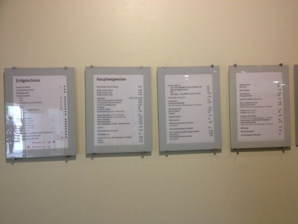 Anschließend bemerkte der Kurs vier Wandtafeln, die Aufschluss über alle sich im Rathaus befindlichen Einrichtungen und Verwaltungsbeauftragten geben.