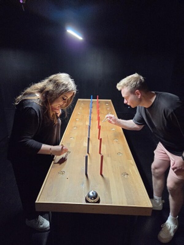 In mancher dunklen Kampfes-Kammer forderten ein Bildschirm und ein Buzzer unser Wissen und die Merkfähigkeit heraus. So kamen nicht nur unsere Körper, sondern auch unsere Köpfe ins Schwitzen. Nach guten zwei Stunden fanden sich alle Duellant*innen geschafft, aber bei bester Gesundheit zusammen. Die Teams haben nun ihre jeweiligen „Battle-Listen“ ausgewertet und die Ergebnisse bekannt gegeben.