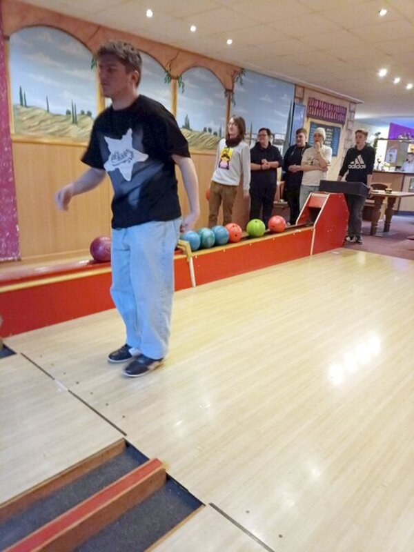 Im Anschluss daran ging es nach Neustadt/Orla, wo zwei angemietete Bowlingbahnen zum kleinen Wettkampf lockten. In wirklich sehr guter Atmosphäre, bester Stimmung und einem super Teamzusammenhalt wurden dann Kugel um Kugel in schneller Abfolge auf die Bahn gesetzt. Dem ursprünglichen Wettkampfgedanken folgte jedoch sehr schnell einfach nur der Spaß am Bowling - gute Gespräche im Team und ein toller Austausch zwischen Teilnehmer*innen und Pädagog*innen.