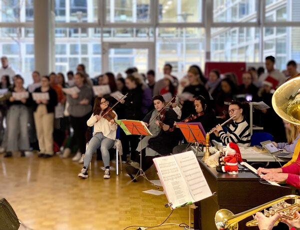 Die Weihnachtszeit steht vor der Tür und läutet eine besinnliche Phase des Jahres ein. Wir stimmen uns jedes Jahr mit unserem traditionellen Weihnachtssingen mit allen Mitarbeiter*innen, Schülern und Schülerinnen sowie Kurs-Teilnehmenden auf diese Zeit ein. Es bietet uns die Möglichkeit, gemeinsam ausgelassen zu sein und innezuhalten, das vergangene Jahr Revue passieren zu lassen und uns auf die besinnlichen Tage einzustimmen.