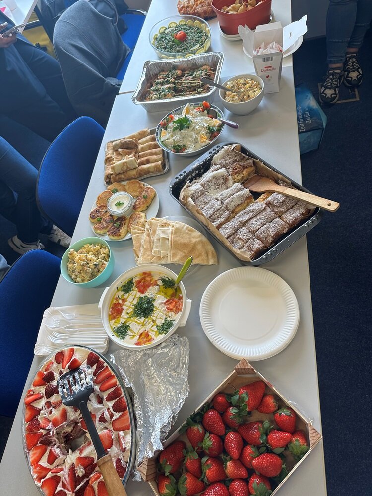 Der Internationale Weltfrauentag am 8. März war Anlass für eine Feier im Berufssprachkurs von Elena Weyerhorst-Lukianova. Was bei uns in Deutschland meist zu kurz kommt, nämlich den Weltfrauentag mit gegenseitigen Geschenken unter Freundinnen und Familie und mit viel Spaß zu begehen, ließen sich die Kursteilnehmenden nicht nehmen.