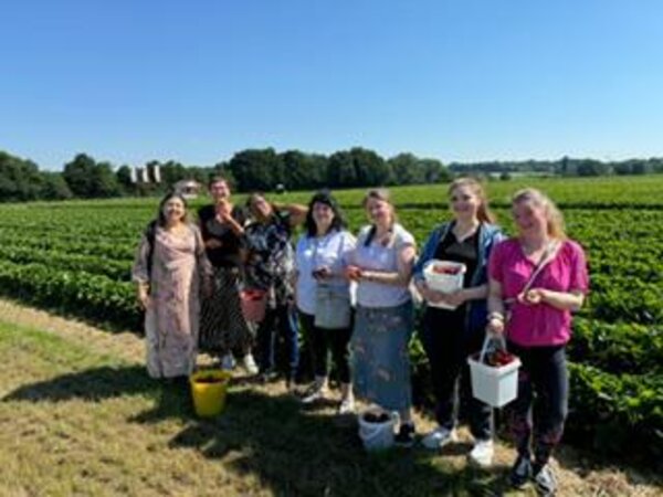„Wirtschaftliches Handeln“ wird mit unseren Teilnehmenden berufsfeldübergreifend immer wieder anhand von Einsparmöglichkeiten im Alltag thematisiert. Die selbstgepflückten Erdbeeren sind dafür ein sehr gutes Beispiel, kosten sie doch nur ungefähr die Hälfte im Vergleich zu den beliebten Verkaufsständen.