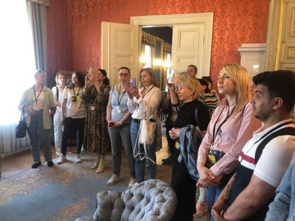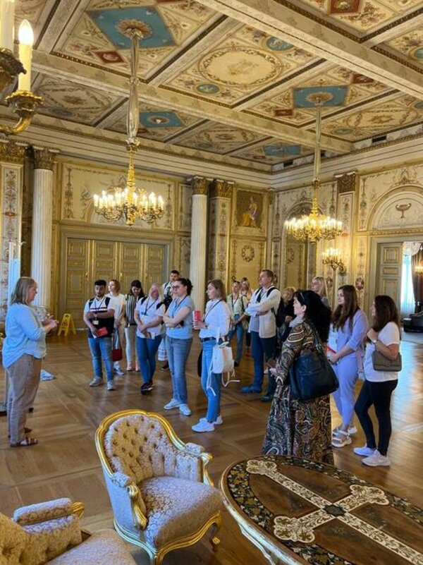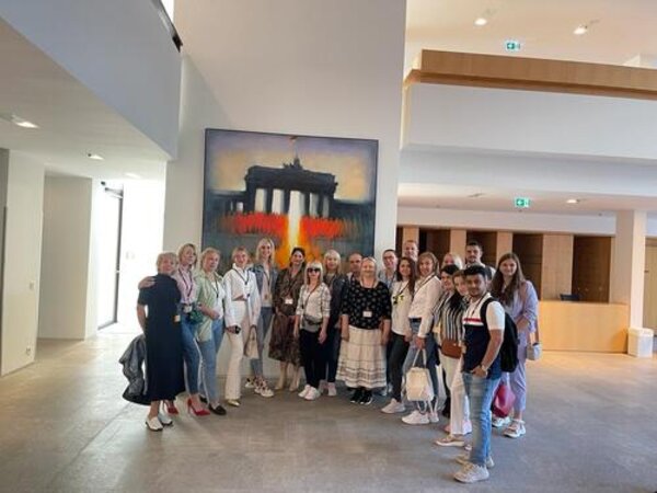 Der Integrationskurs IK-234 (bestehend aus 20 ukrainischen Teilnehmer*innen und einem syrischen Teilnehmer) durfte kürzlich an einer Führung durch das Landtagsgebäude und das angrenzende Stadtschloss in Wiesbaden teilnehmen.